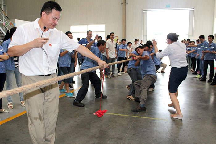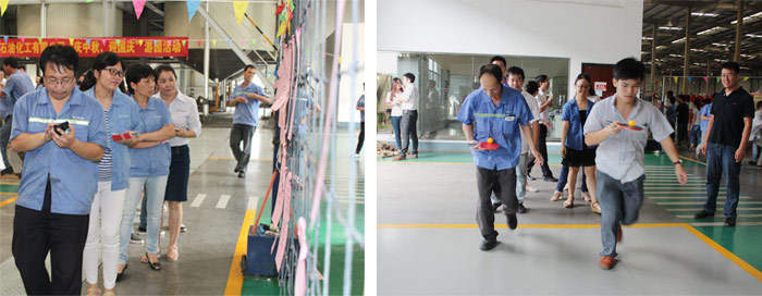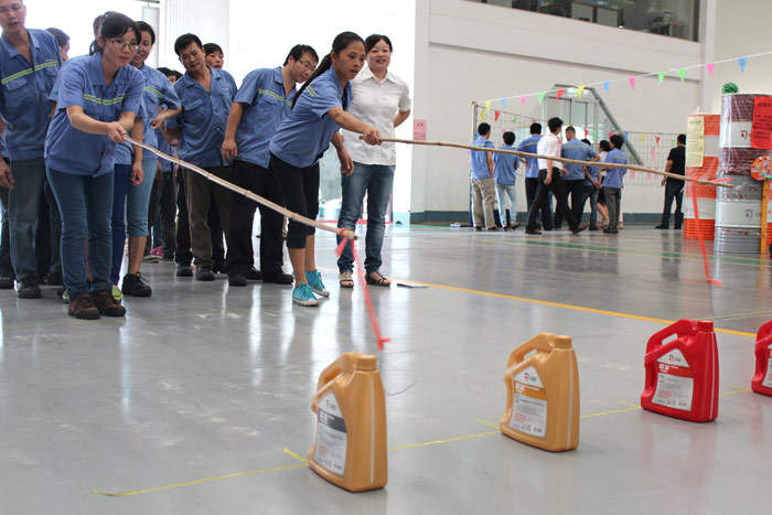? ? ? ? 9月25日下午15:00整,隨著一聲響亮的哨聲,游園活動在調(diào)油車間正式開始。點球大戰(zhàn)、投籃高手、大步流星、眼疾手快、猜謎、繞口令這些趣味十足的游戲讓員工們玩的不亦樂乎。彰顯團隊凝聚力的拔河比賽最為精彩,隊員們都咬緊牙關(guān),使出全身力氣,都想在緊張激烈的力量拉鋸戰(zhàn)中勝出,觀眾的加油吶喊聲連綿不斷,現(xiàn)場氣氛熱烈至極,獲勝的隊伍歡呼雀躍,擊掌慶祝。