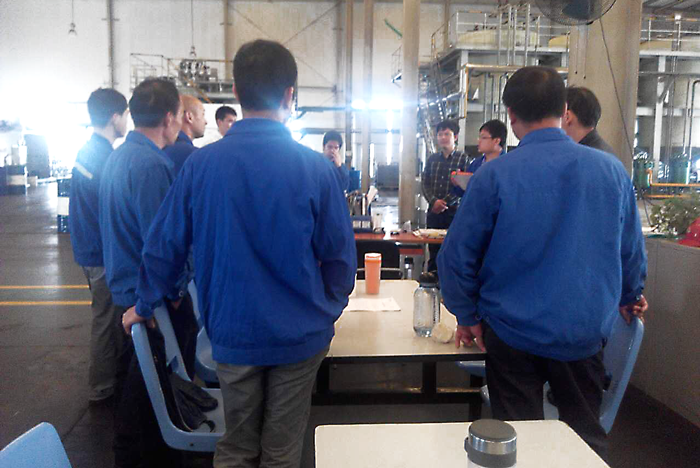 ? ? ? ? 4月19日,調(diào)合車間主任在調(diào)合車間召開一項(xiàng)會議,會議是關(guān)于導(dǎo)熱油爐系統(tǒng)安全運(yùn)行項(xiàng)目的完善,車間領(lǐng)導(dǎo)及部門員工參加了會議。
