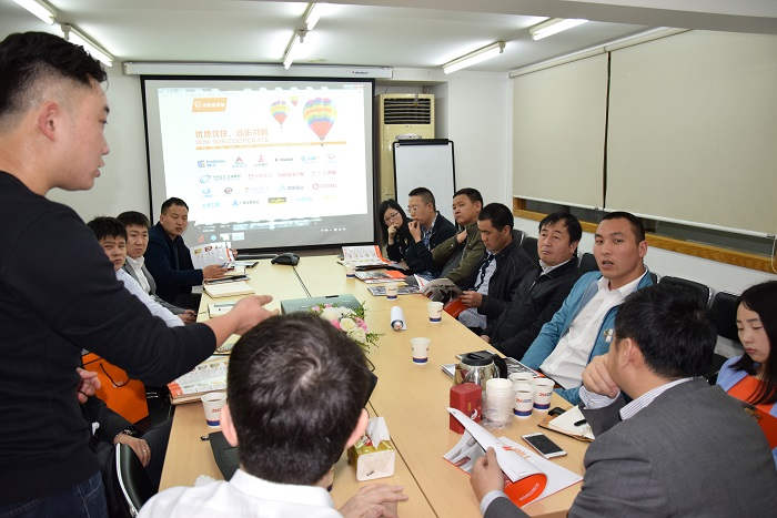 △為現(xiàn)場(chǎng)來(lái)賓介紹公司產(chǎn)品