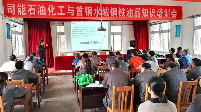 ? ? ? ? 本次培訓(xùn)在收到首鋼水城鋼鐵的邀請(qǐng)之后,銷售人員馬上和技術(shù)人員進(jìn)行溝通,按照客戶所處的鋼鐵行業(yè)的特殊工況結(jié)合潤(rùn)滑油的使用,有針對(duì)性的準(zhǔn)備油品方面的相關(guān)培訓(xùn)材料及應(yīng)用案例??蛻粢卜浅V匾暣舜闻嘤?xùn),來(lái)參加培訓(xùn)的部門有煉鐵廠、煉鋼廠、軋鋼廠、能源公司、煤焦化公司、鐵運(yùn)廠、自動(dòng)化分公司、維檢中心以及水鋼機(jī)動(dòng)部(采購(gòu)部)等相關(guān)部門。在培訓(xùn)的過程中,技術(shù)人員不時(shí)的提出一些油品日常的使用問題與現(xiàn)場(chǎng)人員進(jìn)行交流,增加了培訓(xùn)的參與感和互動(dòng)性。?